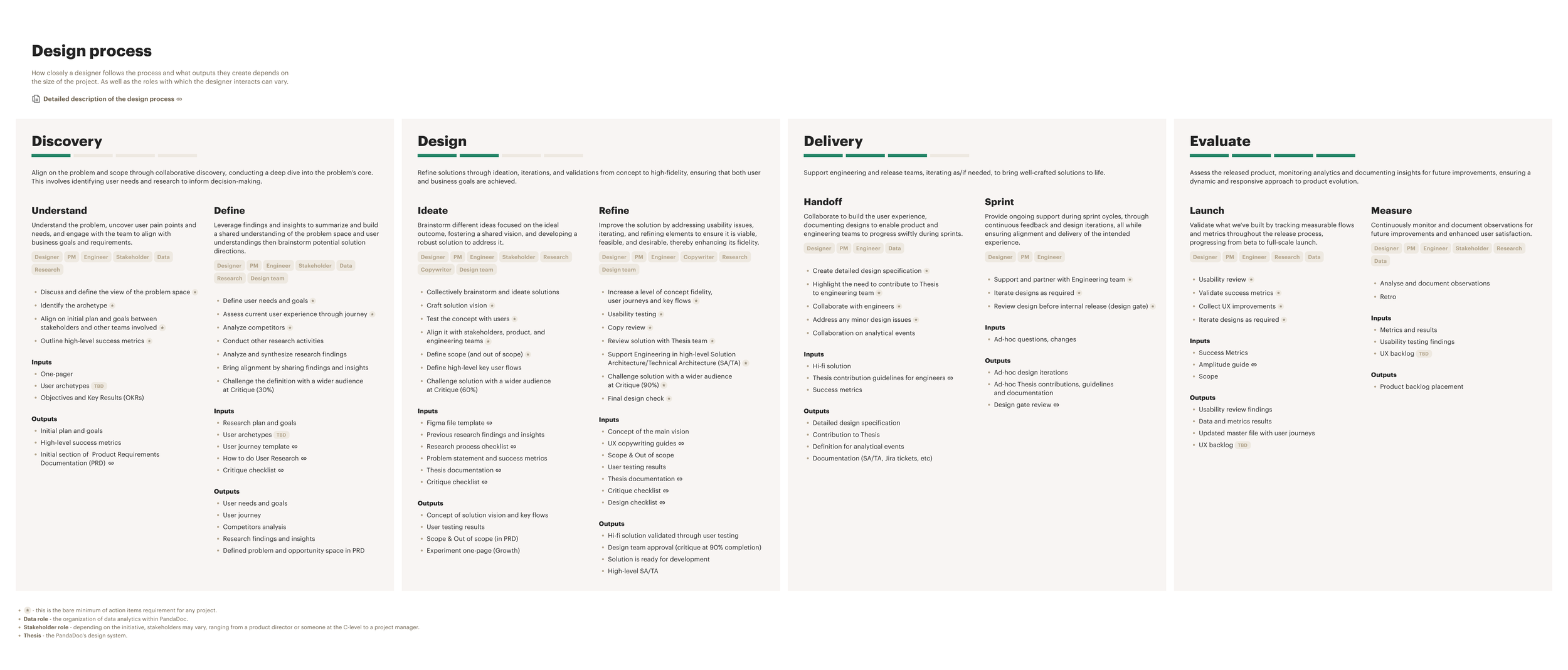 BOTTOM: Standardized design process; RIGHT: Team roles & responsibilities